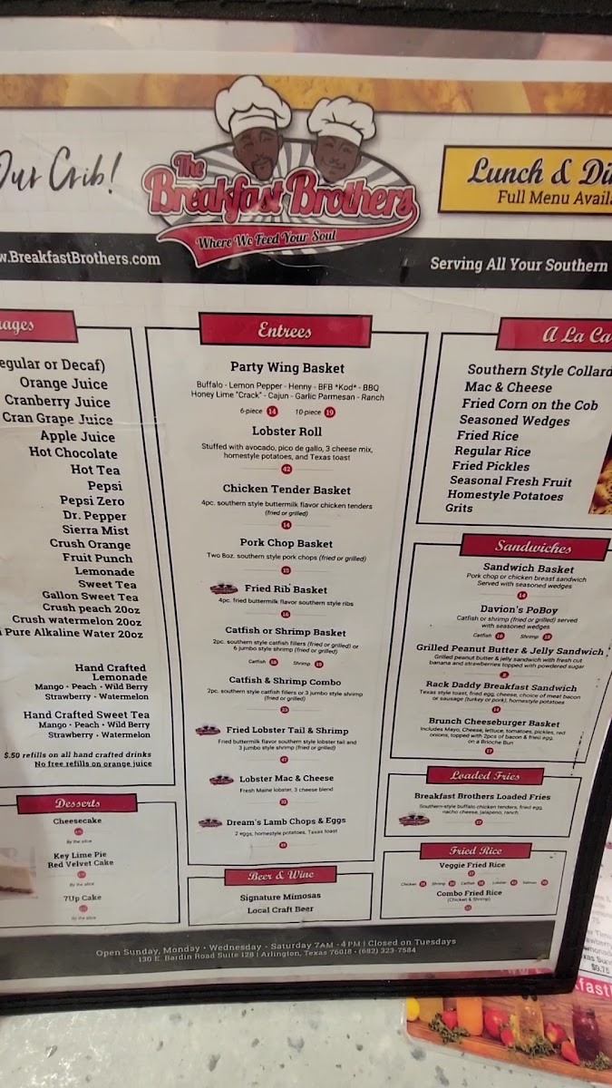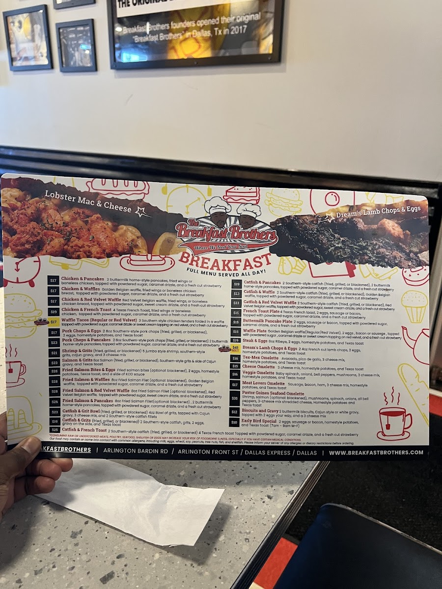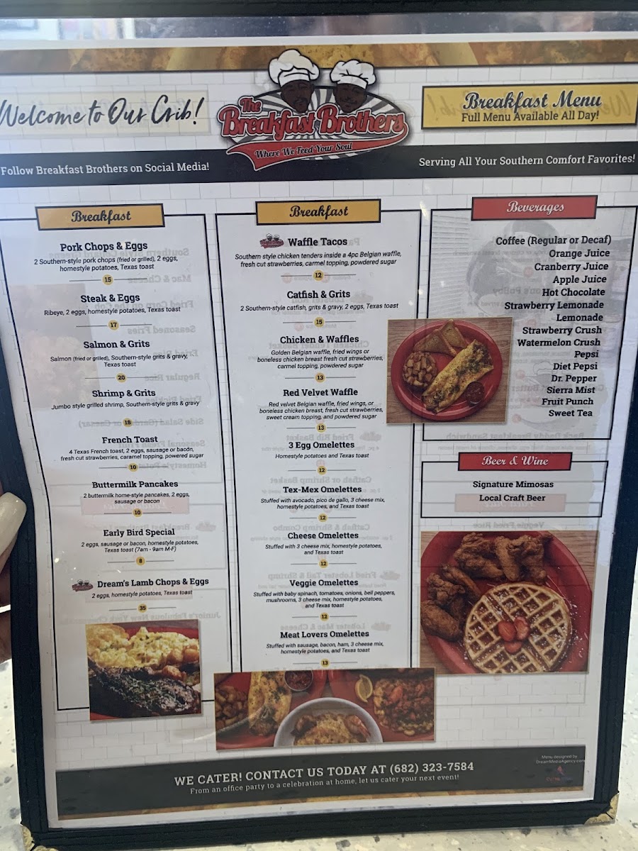 If you’re craving a breakfast that actually feels worth getting out of bed for, the Breakfast Brothers Menu at 130 E Bardin Rd STE 128 in Arlington, TX is where the magic starts. The lineup leans big and bold, with plates stacked high and flavors that don’t hold back. Think fluffy pancakes dripping with syrup, golden waffles with the perfect crisp, and chicken and waffles that hit that sweet-and-savory sweet spot just right.